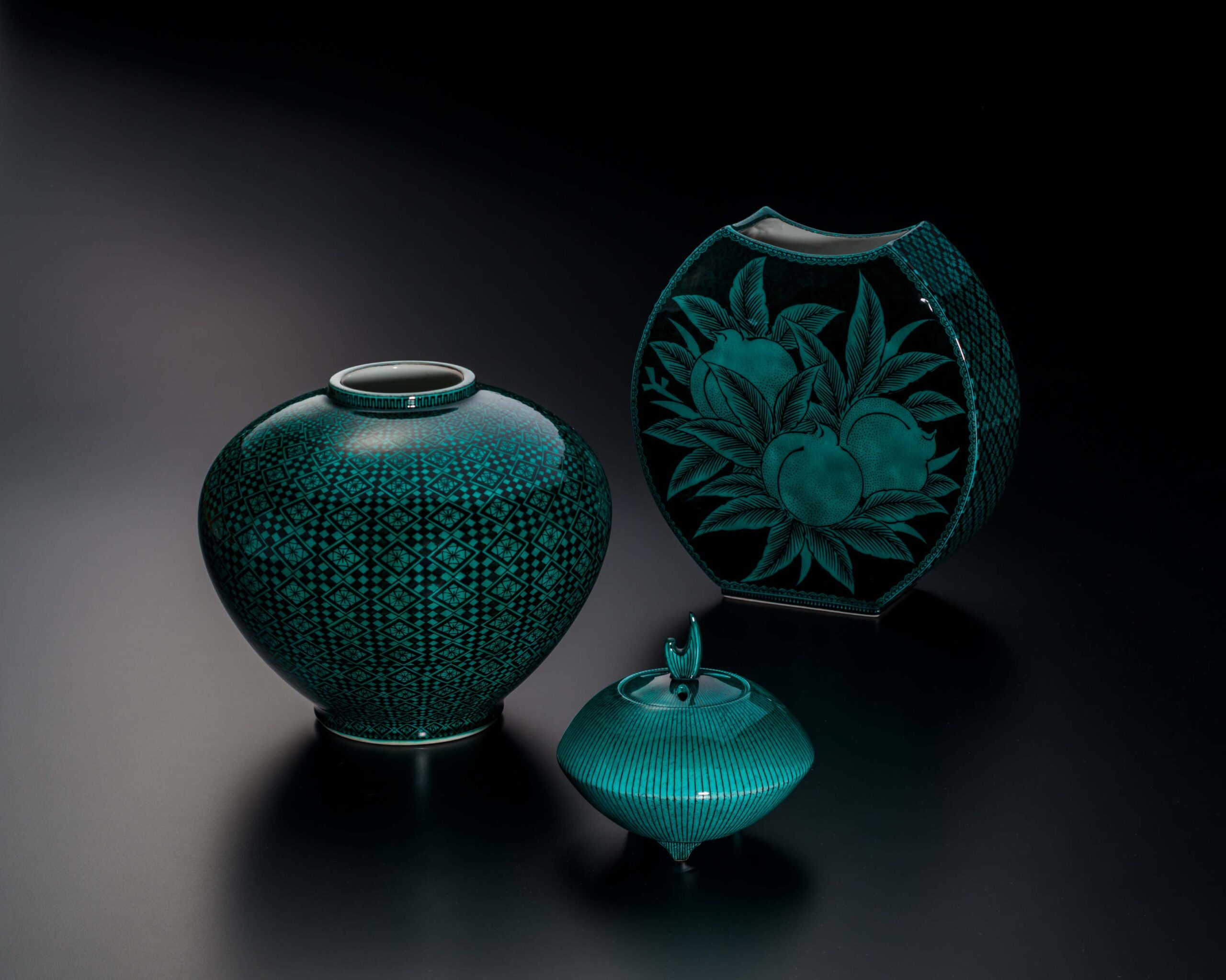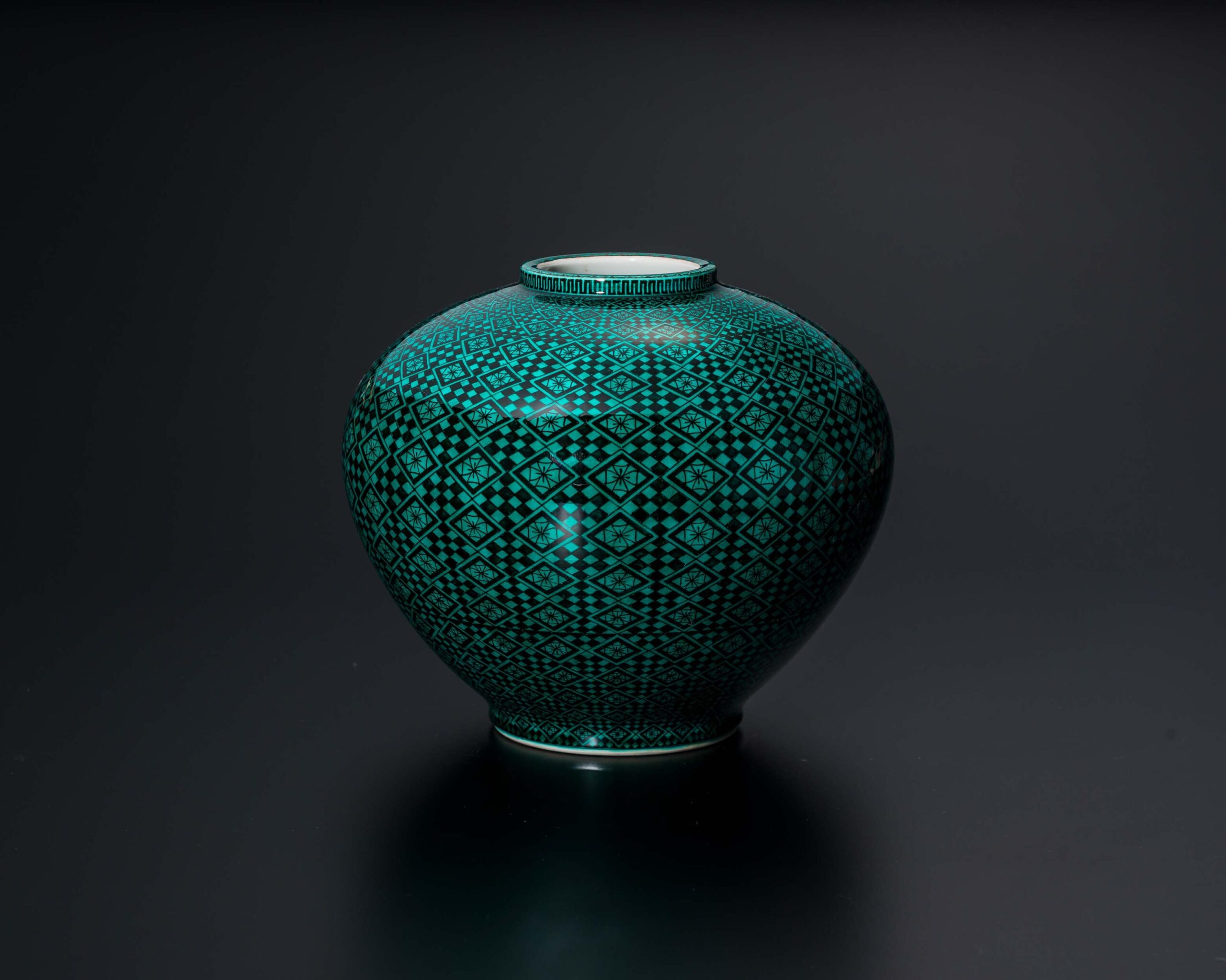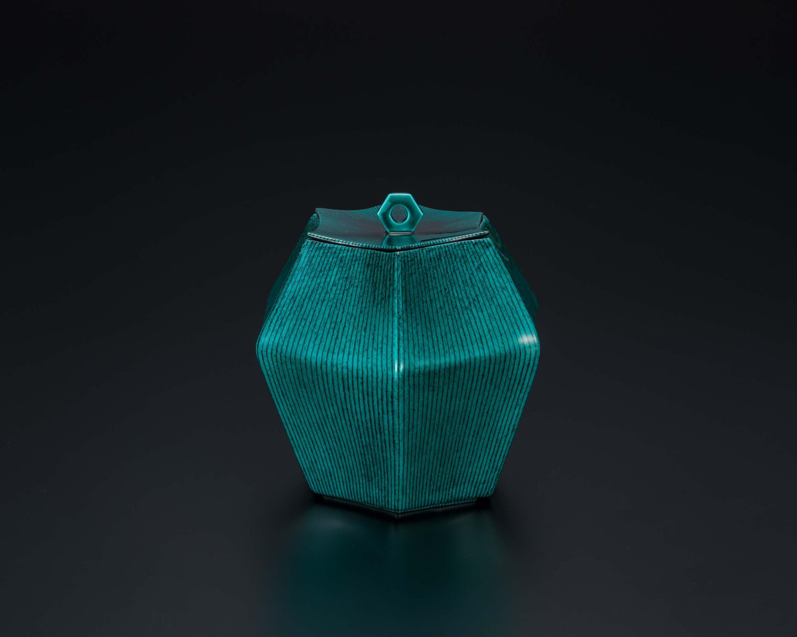 緑彩真麗線文壺(りょくさいしんれいせんもんつぼ)・第68回日本伝統工芸展(令和3年)